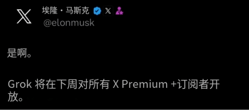 下週,馬斯克躊躇已久的Grok就要上線了。