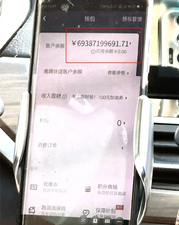 網傳截圖顯示,有司機端賬户餘額開始顯示異常,金額有15萬、317萬不等,最離譜的一個數據高達690億,而滴滴剛公佈的三季度財報總營收才有514億,相當於滴滴全公司一個季度的營收都不如這位司機師傅一個人的賬户餘額高。