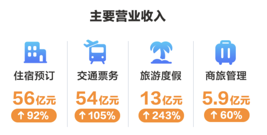在此次發佈的財報中,攜程將營收劃分為了4個大的板塊,分別為住宿預訂、交通票務、旅遊度假業務和商旅管理業務。其中,住宿預訂和交通票務可以算得上是攜程的兩大王牌,而旅遊度假業務和商旅管理業務的營收規模雖不及前面兩者,但本季度增長也算可觀。