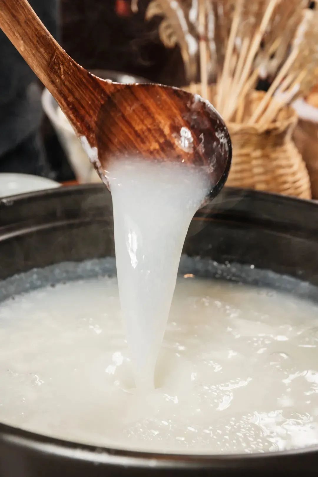 但米湯的參與,則從很大程度上改變了這種困境:大米中的澱粉有很好的保温作用,能持續而穩定地為食物加熱;另一方面,澱粉又能降低水的沸點,併為食材穿上一層保護膜,鎖住鮮味,防止過度加熱與內部失水。