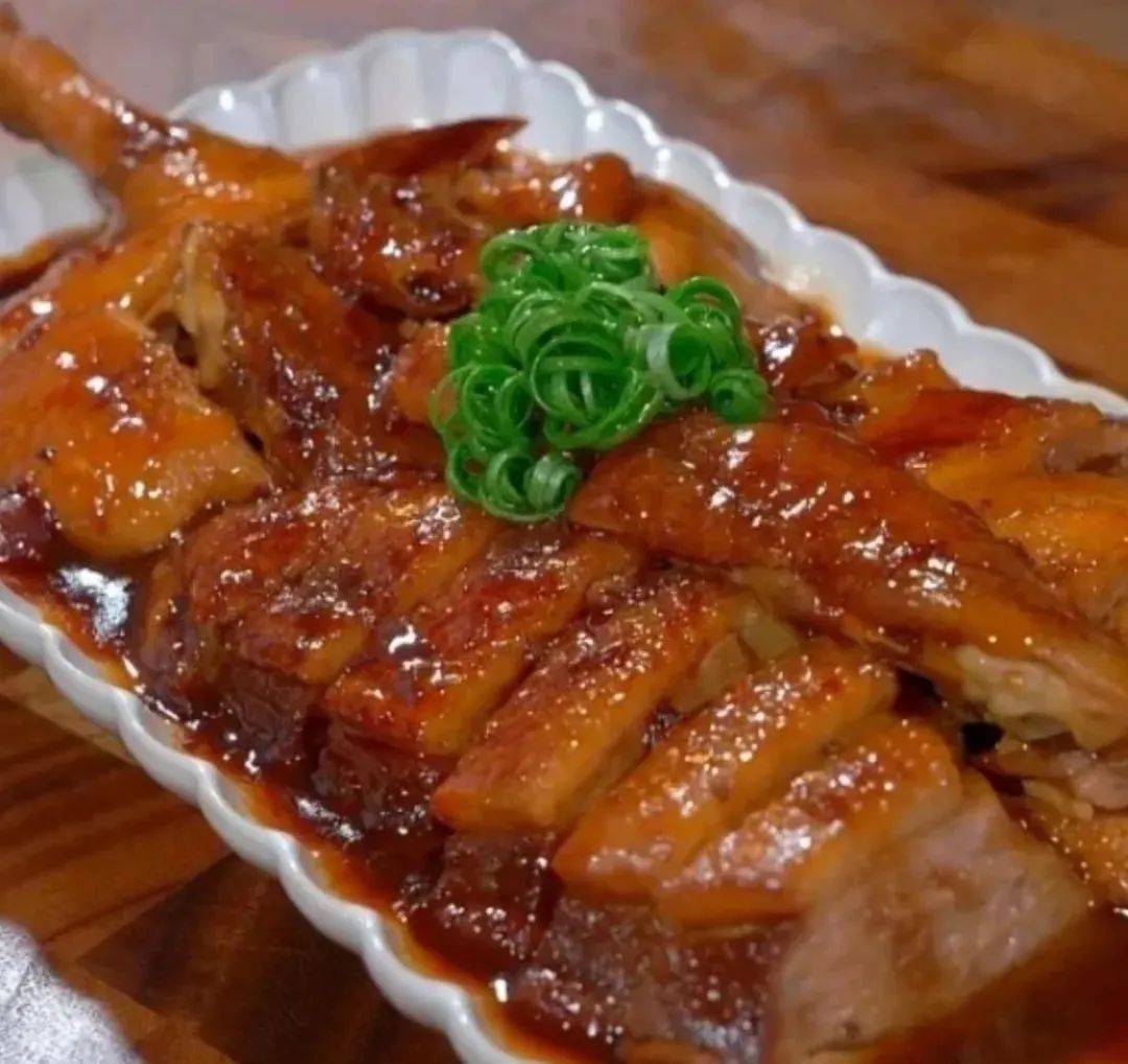 酸梅鴨要將梅子去核,加入冰糖,縫在鴨肚子裏,再用老抽醬油和米酒燜燒整鴨。成菜酸甜開胃,鴨肉酥爛。