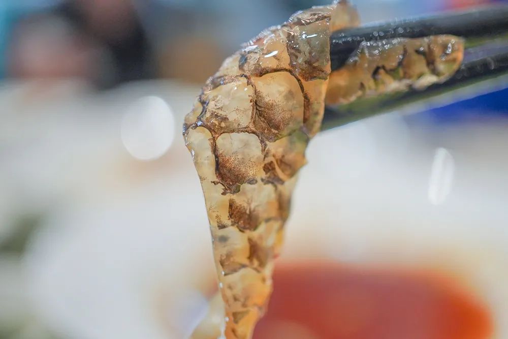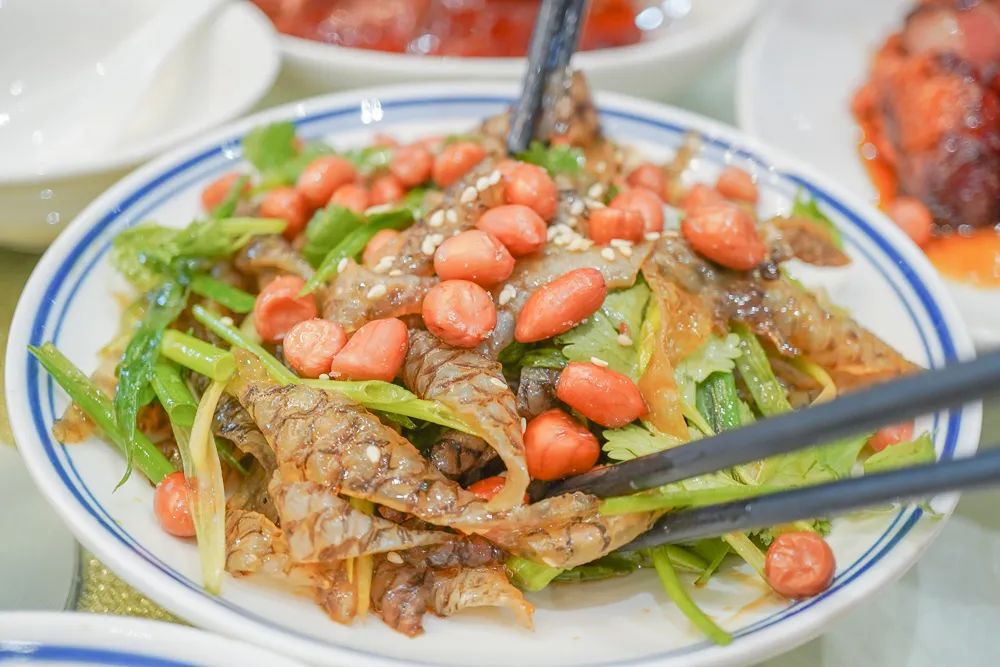 但與日式刺身不同,順德的人制作魚生的同時,並不會浪費每一個部位,除了最規整的部分生吃之外,肥腴卻不夠整齊的魚肉,一般用來打邊爐;魚皮飛水汆熟,再浸冰水,爽脆彈牙,加入花生米、香菜涼拌,利口開胃;魚腸是好東西,加入大量白胡椒去腥後,用來攤雞蛋,蛋軟糯、腸脆嫩,有很獨特的層次感;魚卜就是魚鰾,這是整條脆肉鯇最脆的部分,拿來用同樣生脆的豆角來炒,順德人形容這種脆到極致的口感為“爽”;最後剩下的魚骨也不能浪費,油炸後撒椒鹽,這是下酒的好菜。