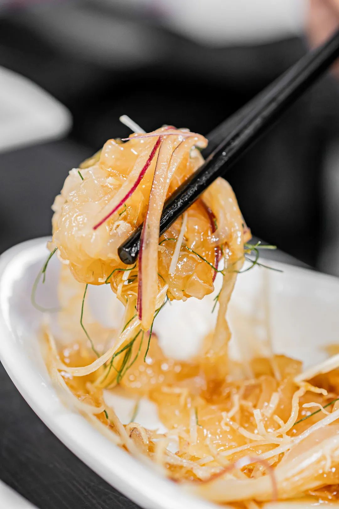 撈起魚生的整個製作過程,則復刻了漢唐之前中國人吃“生膾”的方法:剔除掉雜筋與細骨,切成精細的半透明的生片,加入葱薑絲祛腥,加入各種堅果小菜提味配色,再來一勺油脂拌勻,使其更“順滑”,一派優雅古風。而大家一起喊“一撈金、二撈銀、三撈四撈事事順”的彩頭,則寄寓了農耕先民們重視財富積累、關注家族健康和睦的美好願望。