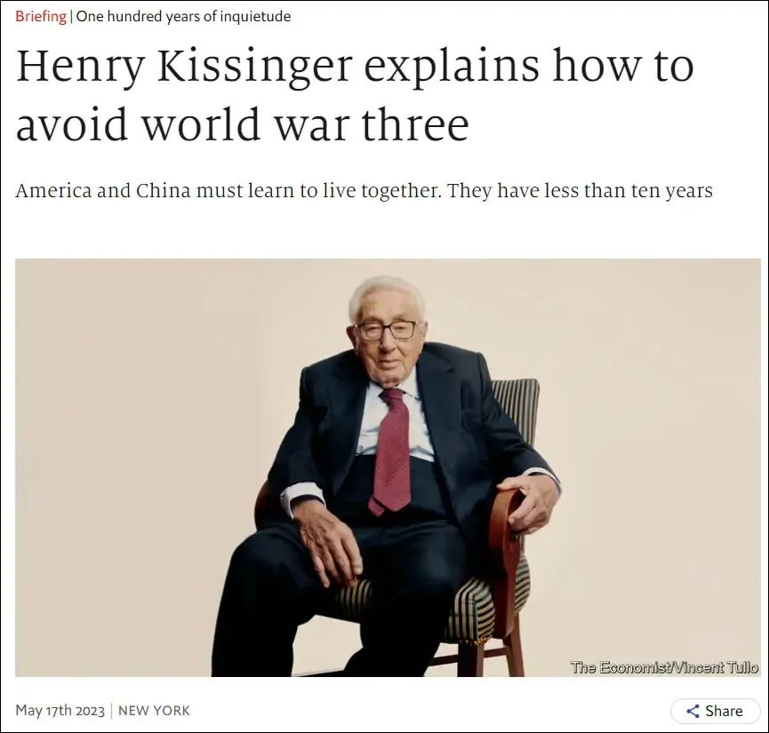 英國《經濟學人》雜誌網站刊登了對美國前國務卿基辛格的採訪文章。