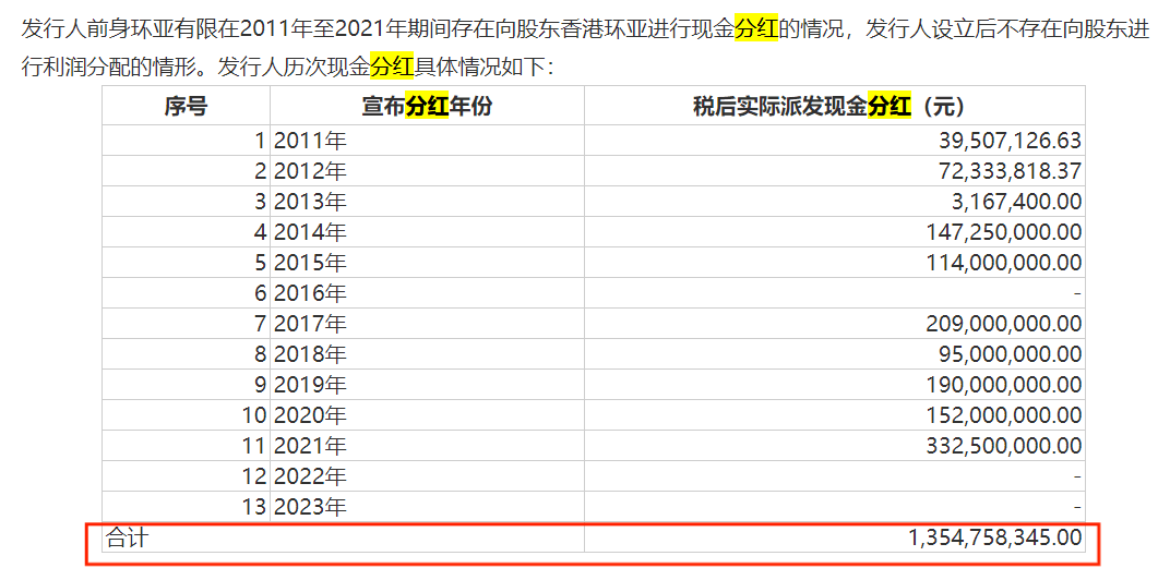 而2021年恰好是環亞科技分紅的一個轉折點。在2011年-2021年期間,環亞有限分紅的税後金額高達13.55億元。