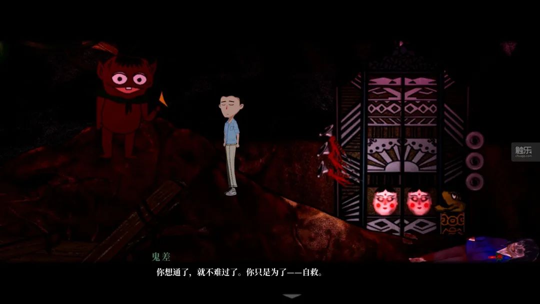 內疚和反思,也是遊戲的主題之一。“為汝題言寄人間”是《吃香》的成就之一,也是一句評語。當玩家選擇並完成“追尋小光”時獲得。