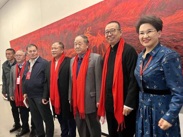 莫言與中國文聯副主席潘魯生等在《大風歌》前合影