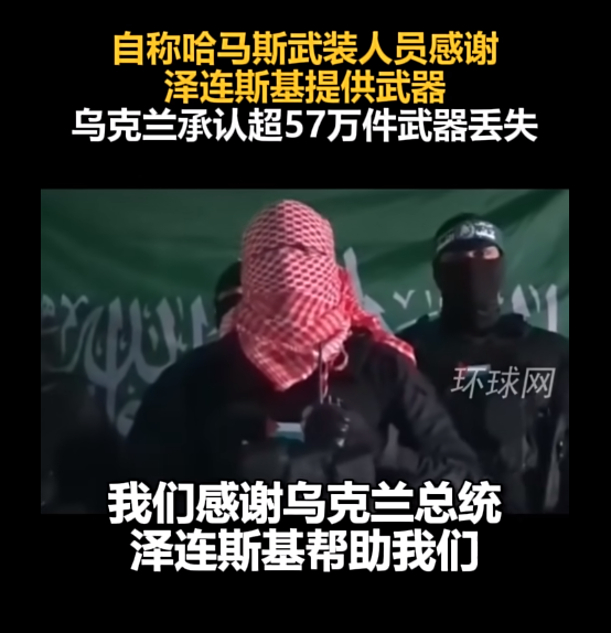 之前網絡上流傳着一段自稱哈馬斯人員感謝澤連斯基“贈箭”的視頻,説感謝烏克蘭向他們提供武器,“對抗猶太復國主義者”。