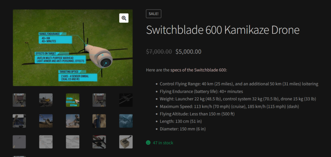 更離譜的是,彈簧刀600目前製造商的產能嚴重不足,今年上半年的報道中,美國智庫專家還表示,由於沒有美軍訂單(換言之就是總訂單量太小),航空環境公司現在基本是在**“手搓”彈簧刀600,生產速度極其緩慢。而前面説到的五角大樓發言人麥克斯韋在聲明中還透露了,(2002年5月)第一批彈簧刀600訂單隻有10架。至今這款產品交付了烏克蘭多少不能確知,但可想而知也多不了哪裏去。就這麼一款在烏軍中“數量稀少”的武器,戰場上沒怎麼用上,先跑到黑市上賣去了**,也真是令人哭笑不得。