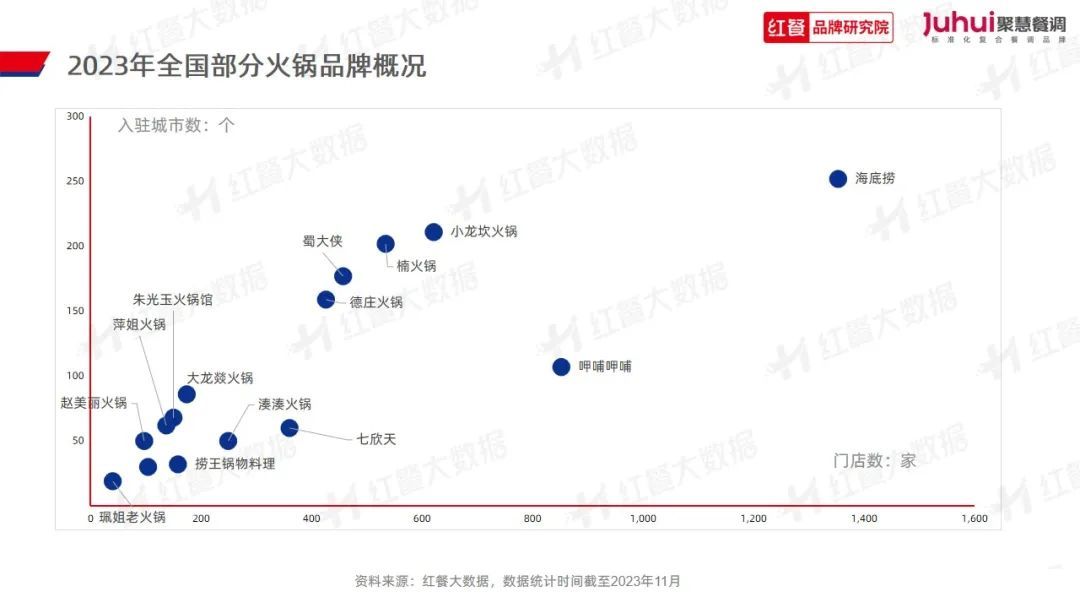從競爭格局上看,“巨頭”海底撈是火鍋賽道目前唯一的千店品牌,擁有超過1,300家門店,入駐超過250個城市,其次是呷哺呷哺,擁有超過800家門店,入駐超100個城市。