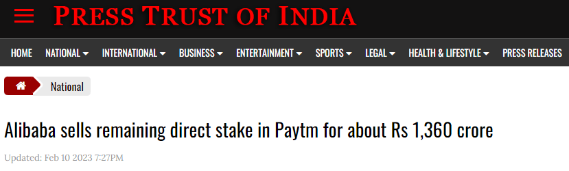 今年上半年,阿里巴巴先後分兩次出售Paytm的所有股份。
