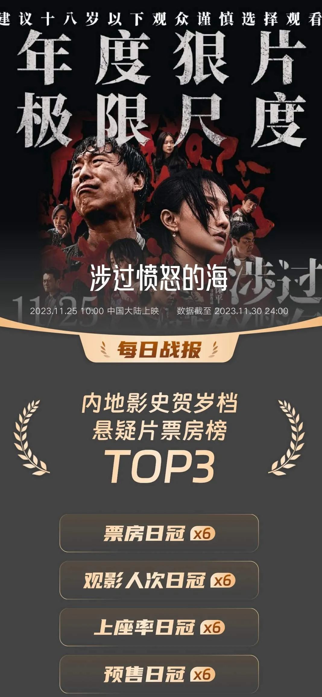 但在對手錶現低迷的情況下,它連續六日大滿貫,蟬聯票房日冠,觀影人次日冠,上座率日冠,預售日冠。