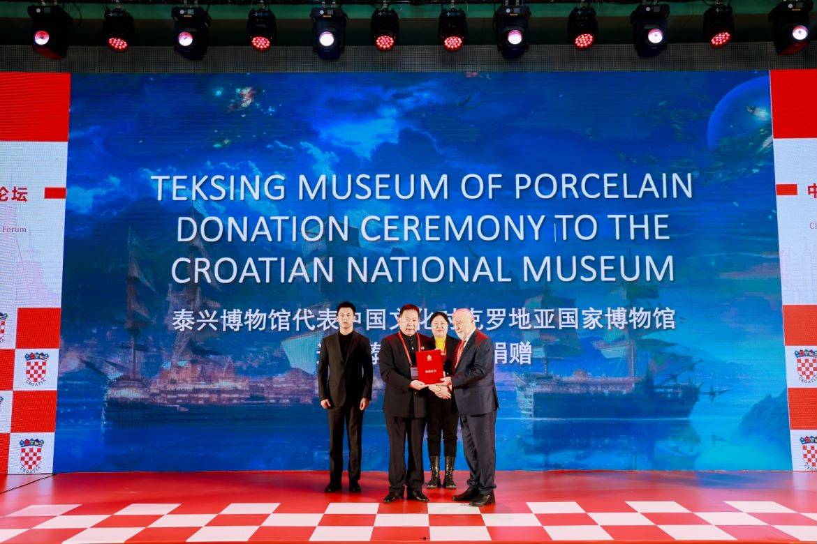泮廬集團早已在國際文化交流中心扮演重要角色,繼上個月向中國文物交流中心捐贈200件瓷器後,11月26日,泮廬集團又選擇在2023年碳達峯碳中和論壇暨深圳國際低碳城論壇的“克羅地亞日”主題館上,見證了這一使命的延續——泰興博物館向克羅地亞國家博物館捐贈了一百多件珍貴的“泰興號”古瓷器。克羅地亞駐華大使達里奧·米海林等代表出席了當天的捐贈儀式。