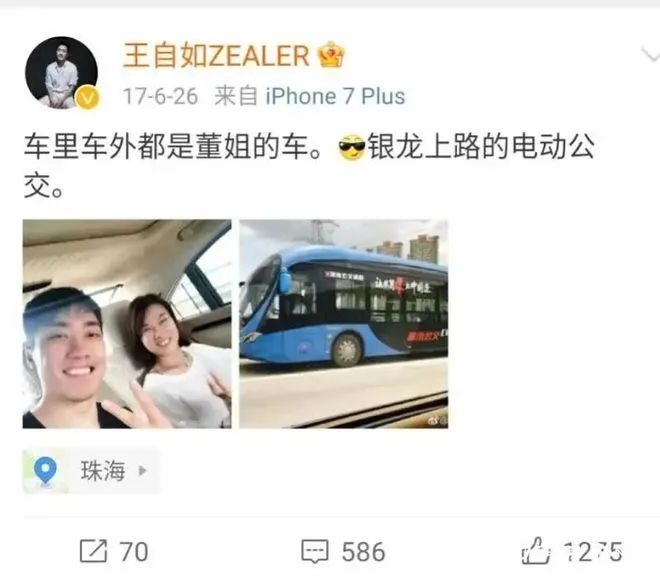 17年的時候,王自如還曬過一張和董姐的合影,時值董明珠自掏腰包入股銀隆造車,科技博主和製造業大佬對談,雙方氣氛融洽,王自如開始開心地比起了耶。