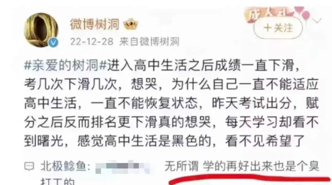甚至在別人傾訴自己痛苦和迷茫的“樹洞”下面,無端諷刺:
