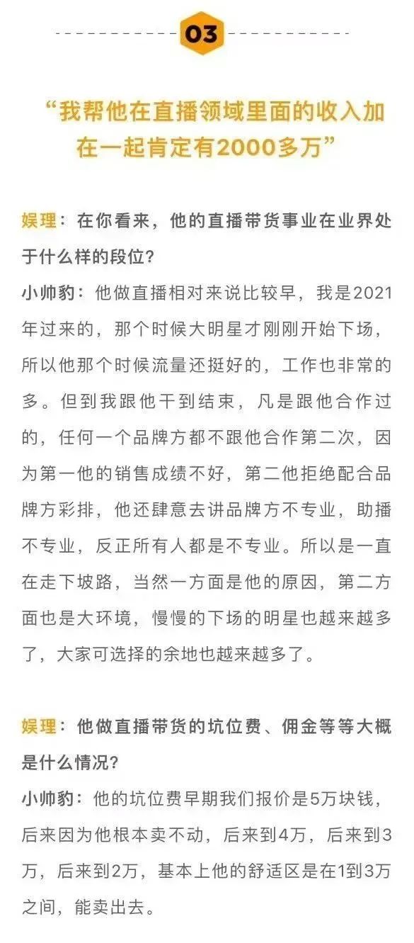 小帥豹透露,陳志朋這些年大多是以直播帶貨為主要收入來源,他在陳志朋公司工作的過程當中,賺了2000多萬是有的。