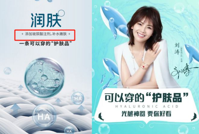 比如某品牌推出了玻尿酸美腿襪,宣傳這條襪子還是“可以穿的護膚品”,裏面添加了玻尿酸注劑,可以滋養雙腿。