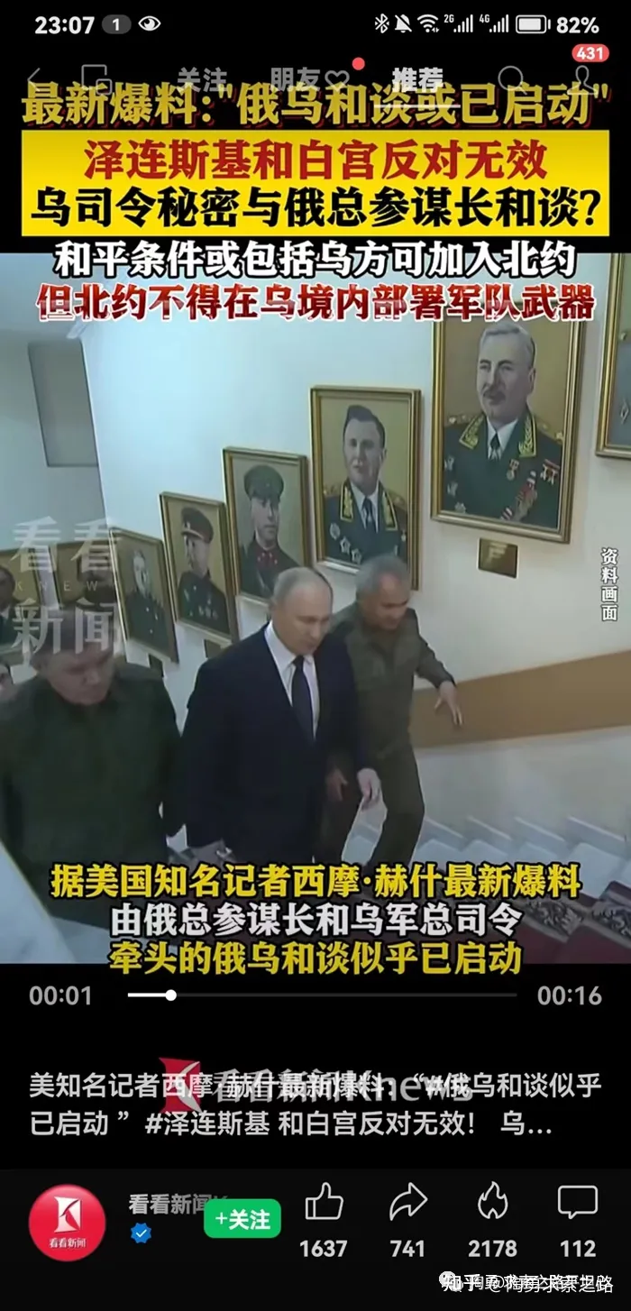 最新爆料,俄烏和談或已啓動——澤連斯基和白宮反對無效。烏軍司令秘密與俄總參謀長和談?和平條件或包括烏方可加人北約但北約不得在烏境內部署軍隊武器……
