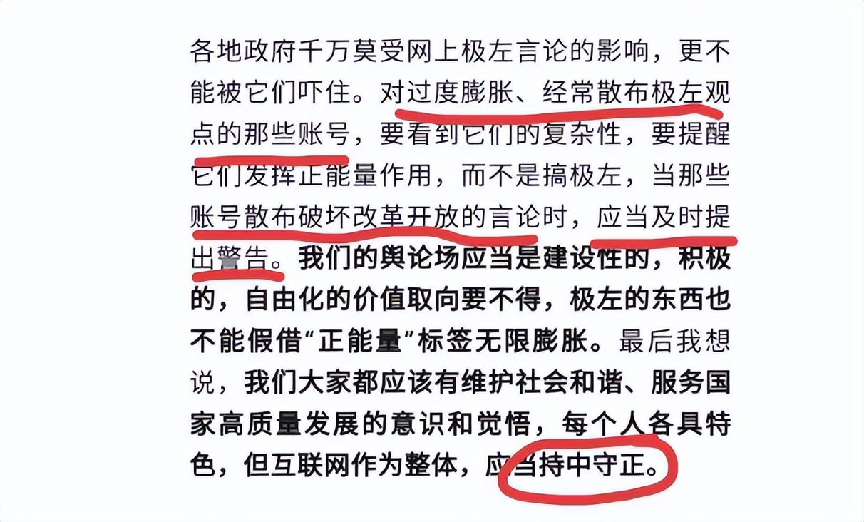 某些極左分子會在互聯網上塑造一種偏離國家大政方針的所謂“政治正確性”“,這句話,大家仔細體會吧。
