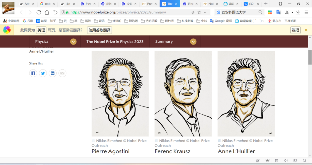 目前人類最快的脈衝激光——阿秒脈衝激光,今年諾貝爾物理學獎就頒給了研究它的三人組:法國的阿哥(Pierre Agostini)、德國的氪佬(Ferenc Krausz)和瑞典的法國人安妮(Anne L’Huillier)。