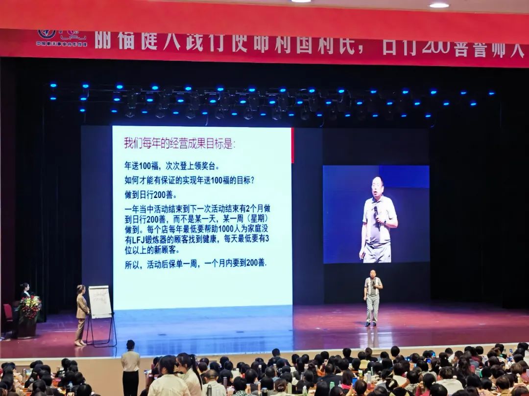 ▲10月16日的誓師大會上,麗福健公司總經理呂萬亮要求門店保證每天有200位顧客到店體驗。