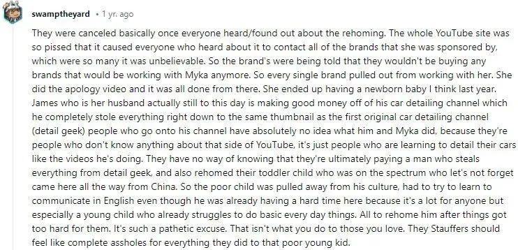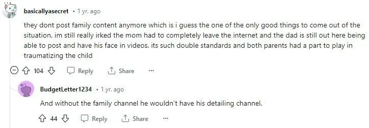 這個汽車頻道的頁面完全讓人看不出這對夫婦曾經的身份,二人仍然靠着製作汽車頁面在掙錢。Reddit上有網友扒出Myka 其實根本沒退出社交網絡,她只不過是退居幕後不再露臉了而已。大家認為他們根本不該再次出現在公眾視線裏。