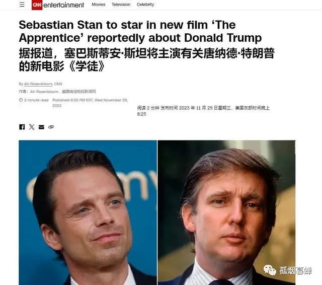 我這兩天在上網的時候刷到了一條特別有意思的新聞。據美國有線電視新聞網(CNN)報道,美國演員塞巴斯蒂安·斯坦(Sebastian Stan)已於近日被證實,將以主演的身份出現在即將上映的好萊塢電影《學徒》(The Apprentice)當中,而且他在劇中扮演的還不是一般角色,而是年輕的川普。