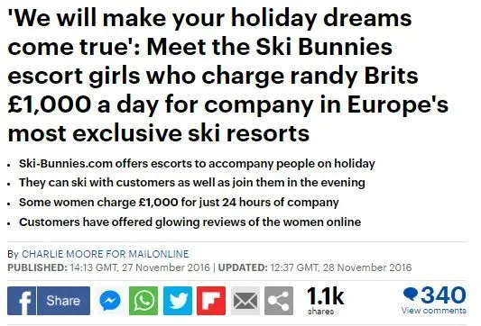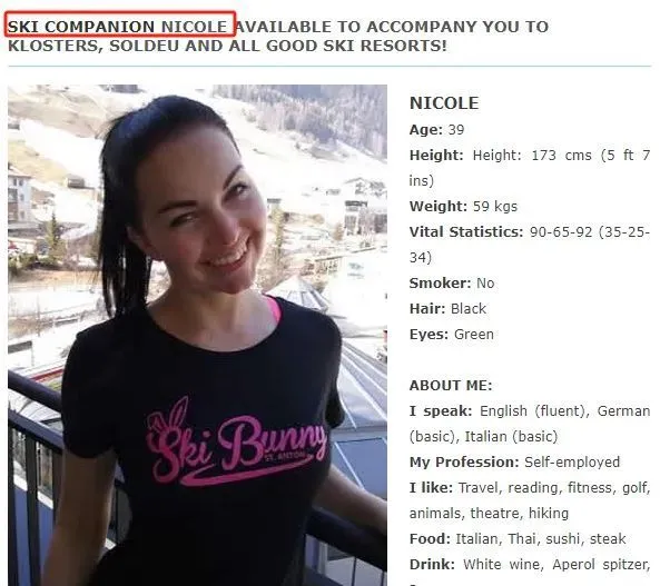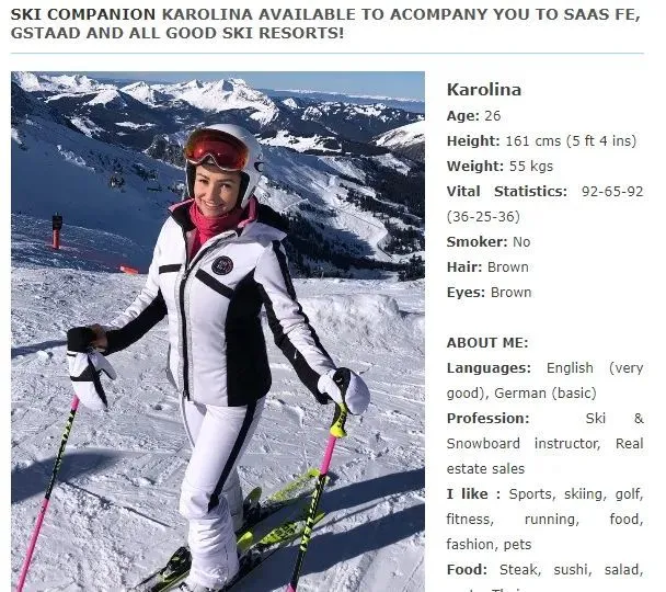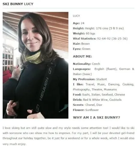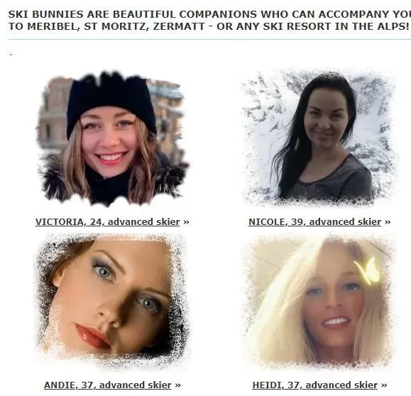她們外型迷人,被稱為Ski Bunny Escorts(陪滑兔女郎),字面上的工作內容是,陪伴你一起滑雪。