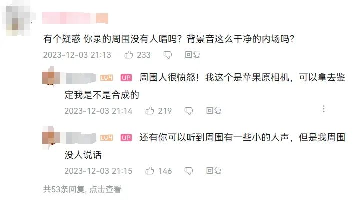 “你視頻造假了吧,現場錄的視頻聲音怎麼會這麼幹淨了,明明大家都在跟着一起合唱。”