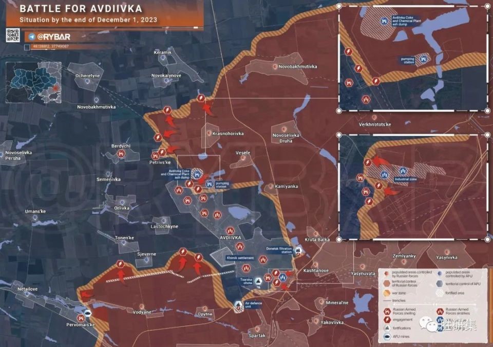 目前,整個俄烏戰場戰事最為激烈,也是雙方爭奪的焦點依然是在阿夫迪夫卡地區。自10月10日俄軍重新在此發起攻堅戰之後,到12月初的基本戰況是這樣的: