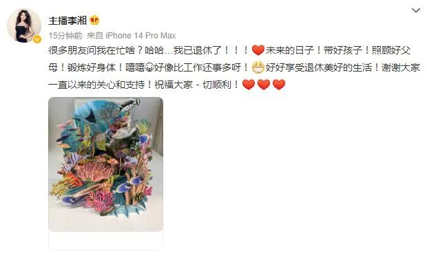 一切其實早有預兆。去年7月,劉濤就發佈公告,表示由於個人發展原因,將暫停直播工作,隨後,陳赫、王寶強、章子怡、景甜等多位明星也確認將停播;今年8月,曾被稱為“明星帶貨一姐”的李湘,也在微博發文表示“已退休”。