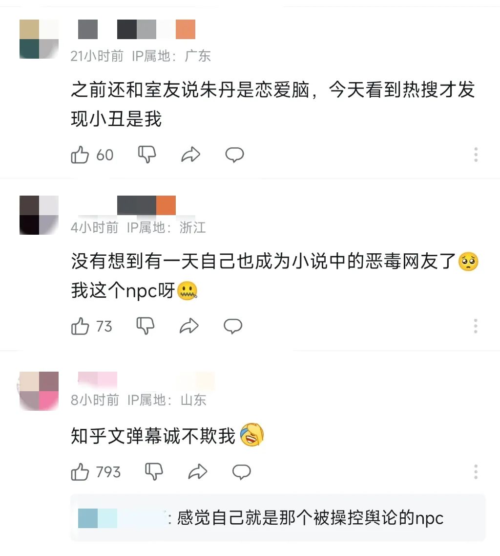 很多網友都開始感嘆,“當年在網上罵他們的我,好像小説裏討人厭的網友NPC”。