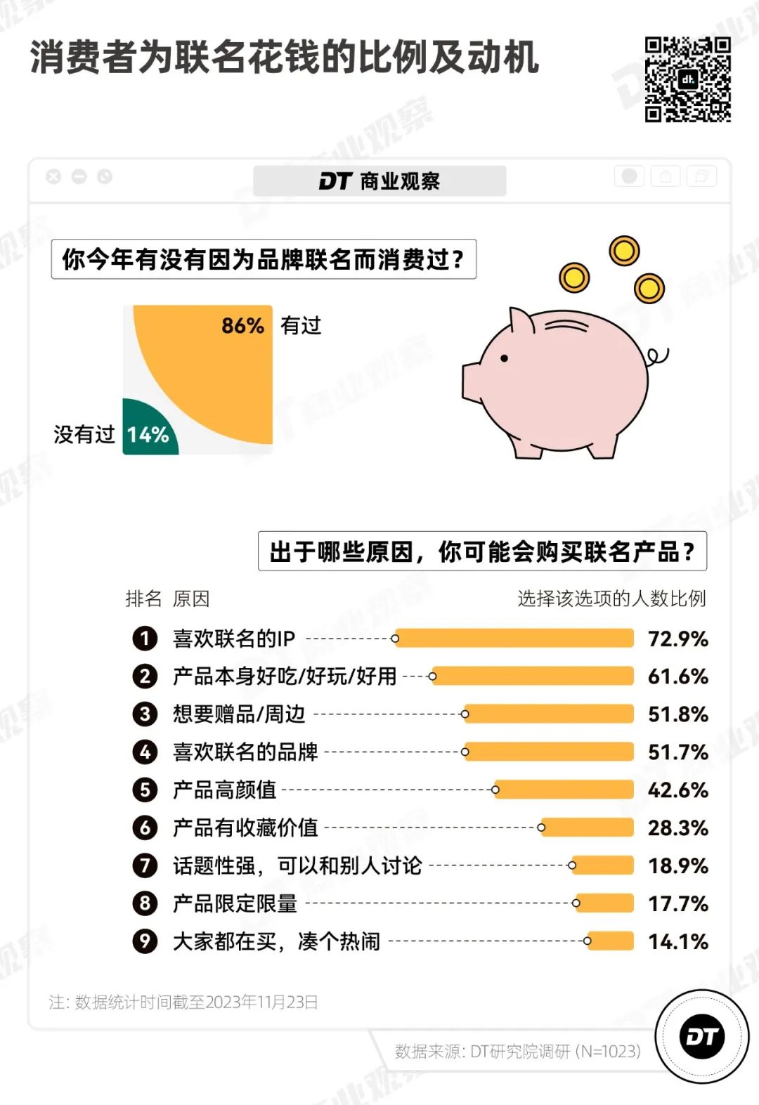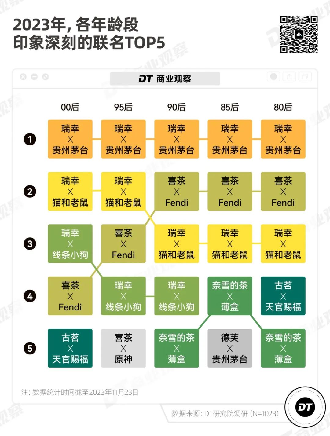我們好奇,2023年哪些聯名被消費者注意到了?大家喜歡什麼樣的聯名,並願意為哪些IP付費?