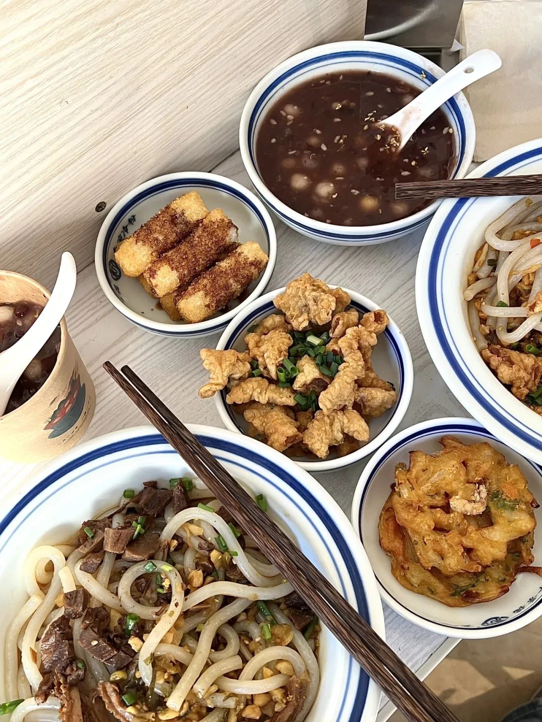 沸水中煮熟的米粉,如瓊脂白玉,在老闆熟練的手起手落中,灑滿豐富配料,沒有更多複雜的操作,美味的食物往往就是這樣樸實無華。