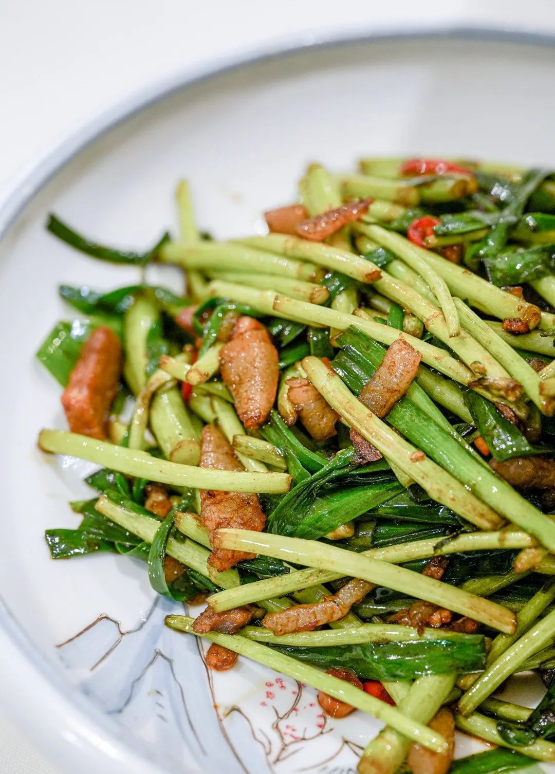 這道菜臘肉金黃,藜蒿青綠,脆嫩爽口,且有一股特別的清香味道。