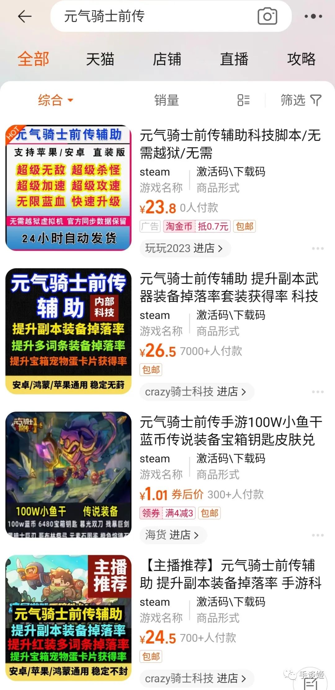 比如外掛,哪怕要求遠程聯網,外掛還是可以修改數值,你卡着動不了,別人直接將裝備爆率拉滿。官方目前已封禁一批人,不過手談姬在某寶上隨便一搜,就看到了大批賣掛店鋪。