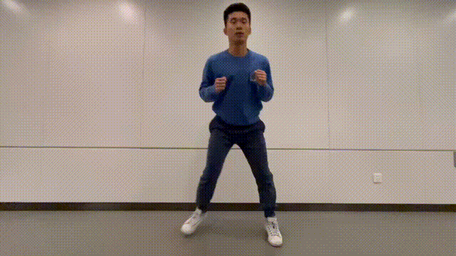 站直後雙腳分開至與肩同寬,抬起右腳使身體呈左腳單腳站立狀態。然後向右邊水平跳躍,右腳着地的同時左腳抬起,落地後變成右腳單腳站立,再往左邊水平跳躍,不斷重複動作。