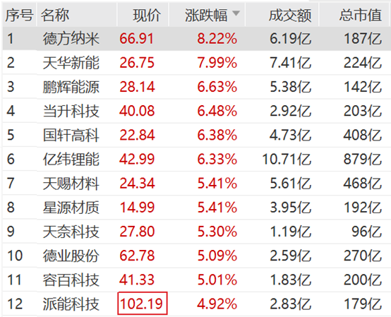 滬指雖然已回落至3000點下方,但今日早盤電池產業鏈加速上漲,德方納米漲超8%,天華新能漲近8%,鵬輝能源、當升科技、億緯鋰能、國軒高科漲超6%,天賜材料、星源材質、天奈科技、德業股份等漲超5%,電池一哥寧德時代漲逾4%。