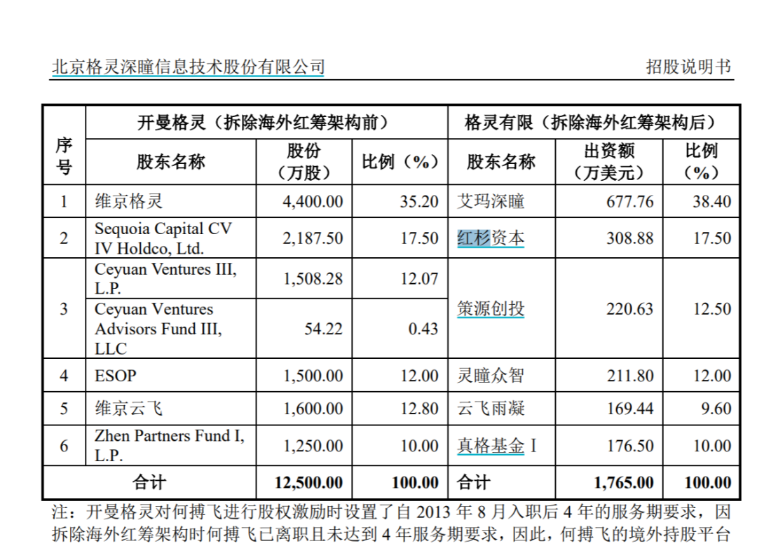 招股説明書顯示,格靈深瞳在2013年8月、2014年6月陸續完成A輪、B輪融資,引入真格、策源和紅杉,其出資額分別176萬美元、220萬美元、308萬美元。媒體曾報道,彼時真格基金的徐小平曾對格靈深瞳喊出5000億美元的估值,紅杉資本的沈南鵬曾給出1000億美元的估值。雙方最後妥協在3000億美元(約合人民幣1.9萬億)這個“中間數”,一時之間,在行業傳為“佳話”。