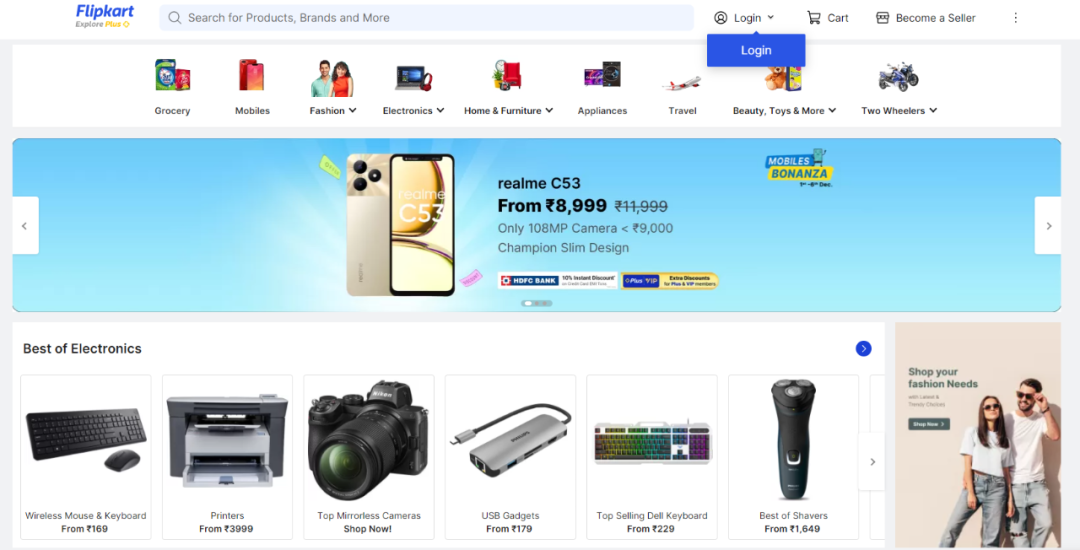 Flipkart購物頁面 圖源:Flipkart