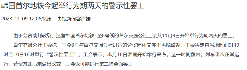 就像這次韓國人在地鐵實行罷工(減少了地鐵的部分班次),來反抗裁員。