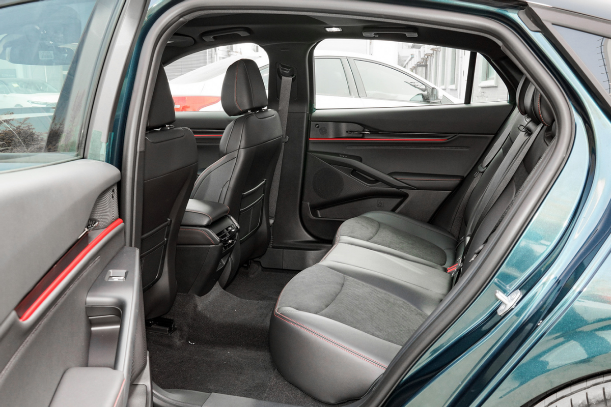 舉個例子,一米七五身高的成年人,在調整好前排座椅,進入福特蒙迪歐大馬力E-混動版的後排,腿部空間的餘量達到了三拳以上,輕輕鬆鬆能夠翹起二郎腿,並且沙發式座椅柔軟且舒適,頗有經典美系車的豪華感受。