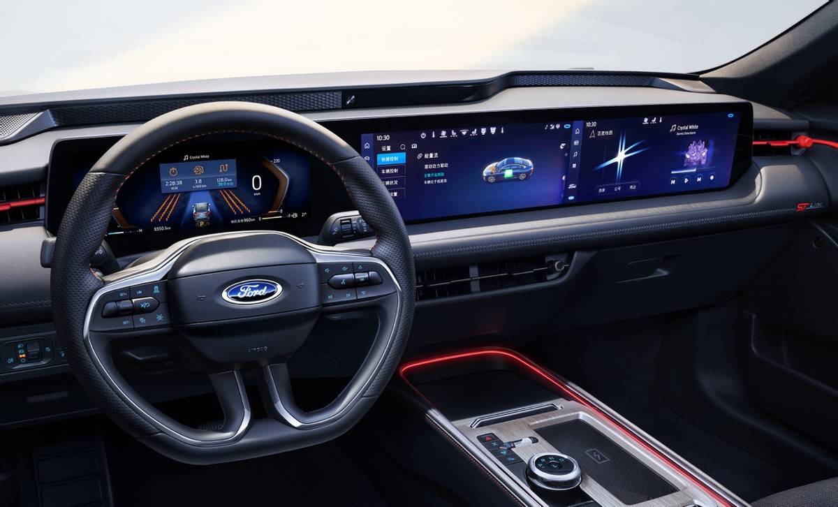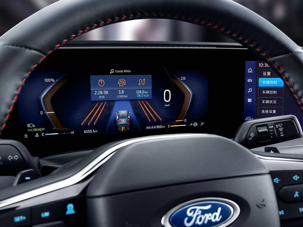 福特蒙迪歐大馬力E-混動版擁有1.1 米大聯屏整合 12.3 英寸全綵數字液晶儀表盤和 27 英寸高清 4K 中控屏,並且基於SYNC+2.0 智行互聯繫統,能帶來出色的顯示效果和交互效果。在看電影、看電視劇的時候,能帶來沉浸式的體驗。