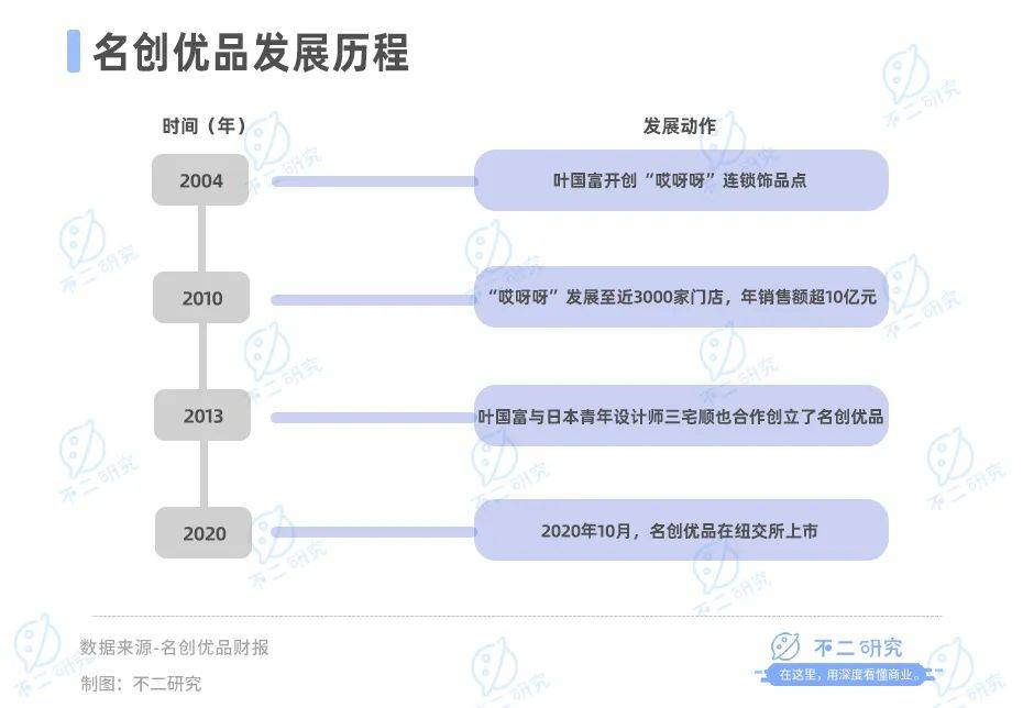 2013年,葉國富與日本青年設計師三宅順也合作創立了名創優品。創立之初,其憑藉性價比優勢以及門店快速擴張帶來的規模效應,迅速發展至全國各大城市。並於2020年10月在紐交所成功上市。