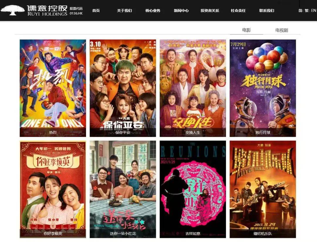 儒意投資過的重要電影有《你好,李煥英》《送你一朵小紅花》《獨行月球》《縫紉機樂隊》《動物世界》《致我們終將逝去的青春》《小時代4》《老男孩之猛龍過江》等,今年主控的有《交換人生》《保你平安》《熱烈》,參投了《消失的她》。其電視劇代表作有《北平無戰事》、《琅琊榜》、《羋月傳》及《老酒館》等。今年出品的《我的人間煙火》口碑不佳但熱度可觀,以47個的廣告投放數高居今年暑期檔劇集榜首。