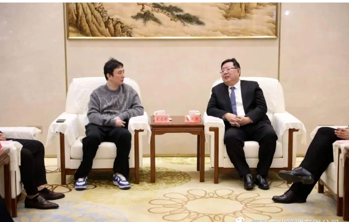 值得關注的是,近日,王思聰以北京寰聚商業管理有限公司(下稱“北京寰聚”)董事長的身份,會見泰安市委領導,並與泰安市政府就37億文旅項目進行簽約。會見中王思聰一身休閒打扮、頭髮凌亂,與坐在對面一身正裝的泰安市市委書記相比,顯得格外突兀。