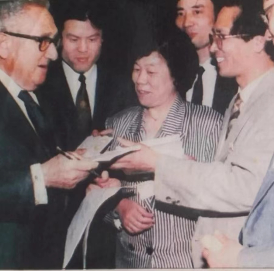 1993年5月13-16日,“國際行動理事會”第十一屆會議在上海召開。理事會主席、聯邦德國前總理施羅德,英、法、日、韓、澳大利亞、加拿大等國前總統、前總理、前首相與會,美國前國務卿基辛格亦出席會議。會議茶歇時,基辛格在和黃華見面合影前,欣然為我們幾位工作人員在會務手冊上簽名留念,留下了難忘瞬間。
