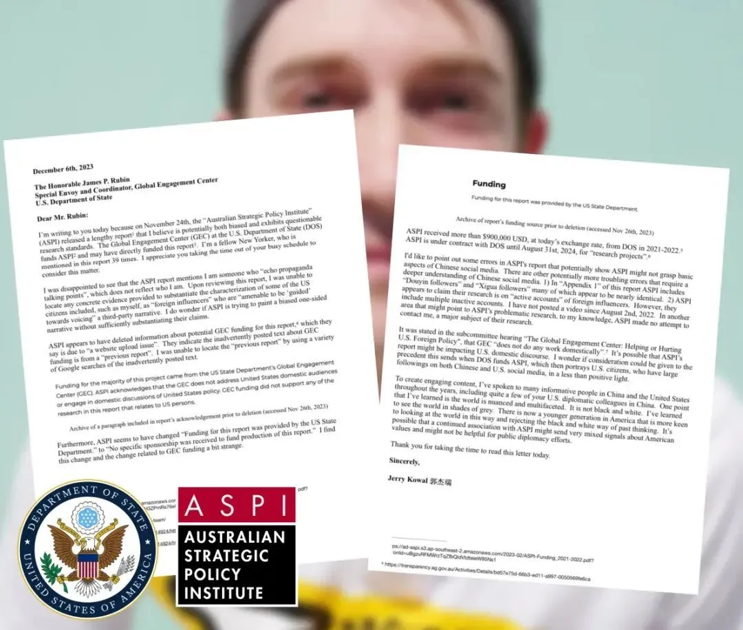 在公開信中,郭傑瑞提到,自己寫信的原因是,11月24日,澳大利亞戰略政策研究所(ASPl)發佈了一份關於“外國網紅與中國宣傳體系”的長篇報告,該報告將郭傑瑞描述成“服從引導”的中國宣傳工具。