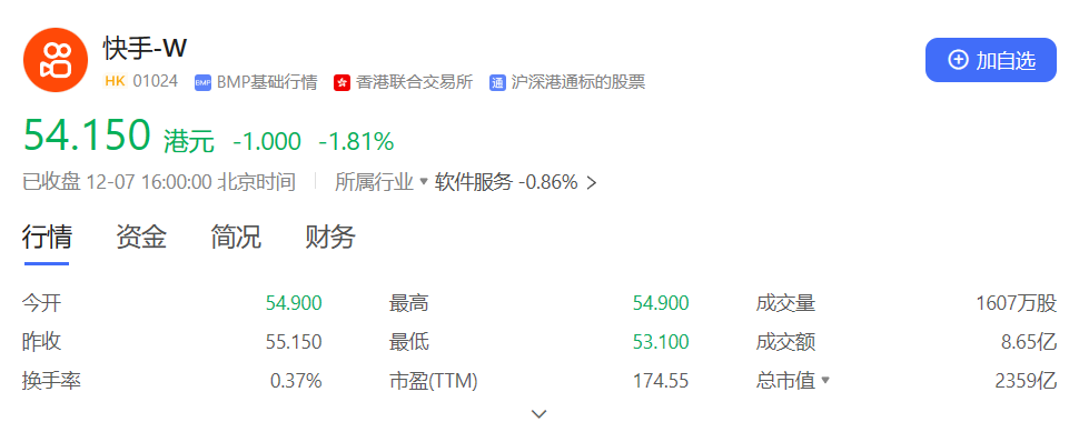 截至12月7日,快手股價為54.15港元,從年初到現在,跌幅超過20%,如果與115港元的發行價相比更是嚴重縮水。哪怕是連續的盈利也沒能提振股價,這才是真正令人擔憂的事。