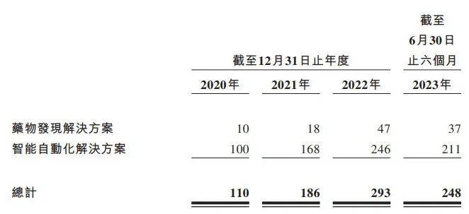 過去幾年,晶泰科技不論是藥物發現解決方案還是智能自動化解決方案收入均在快速增長。數據顯示,2020年兩個方案合計項目為110個,2022年底增長至293個。